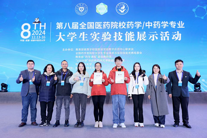 12月14日至15日,第八届全国医药院校药学/中药学专业大学生实验技能展示活动在成都中医药大学举行,我校2021级药学专业许芊芊同学获得比赛特等奖,2021级临床药学专业尹少千同学获得一等奖。我校学子在这项竞赛中第6次拿到特等奖,充分体现学校高度重视药学专业人才培养质量和实验技能提升。