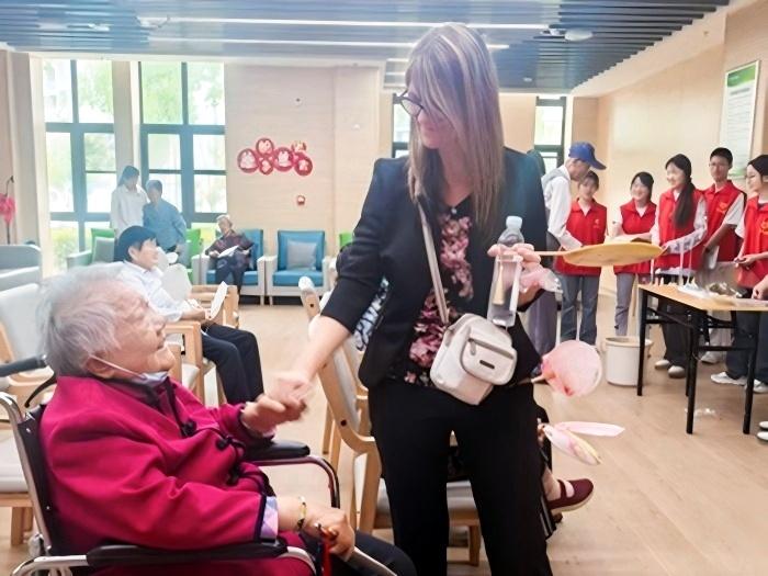 5月28日,卫生管理学院学生志愿者们走进中康养肥西县示范老年公寓,开展“走进养老院,传递夏日温情”端午节主题志愿服务活动,学院健康服务与管理(中外合作办学)专业的外籍教师瑞贝卡·安·韦尔伯恩(Rebbecca Ann Wellborn)也参与了活动。